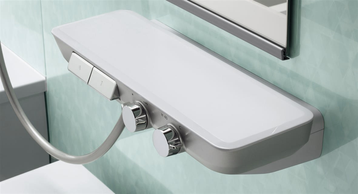 This bathroom was designed to be the most user-friendly for the Japanese. The ergonomics and flow lines around the sink area have been studied so that one can comfortably reach the shampoo and take a shower while sitting down, and the 2-way touch faucet is designed so that one can temporarily place an object on top of the faucet.