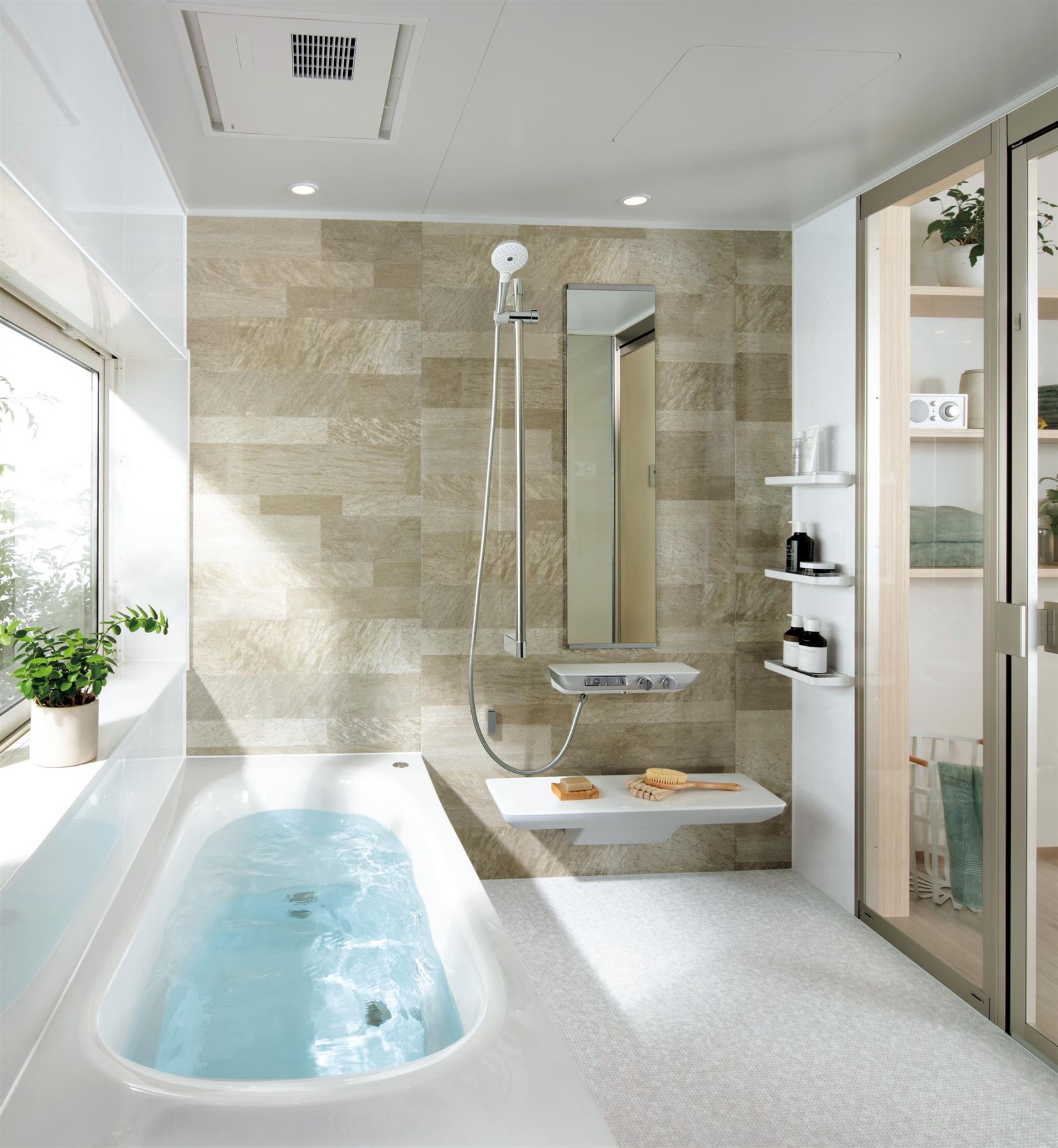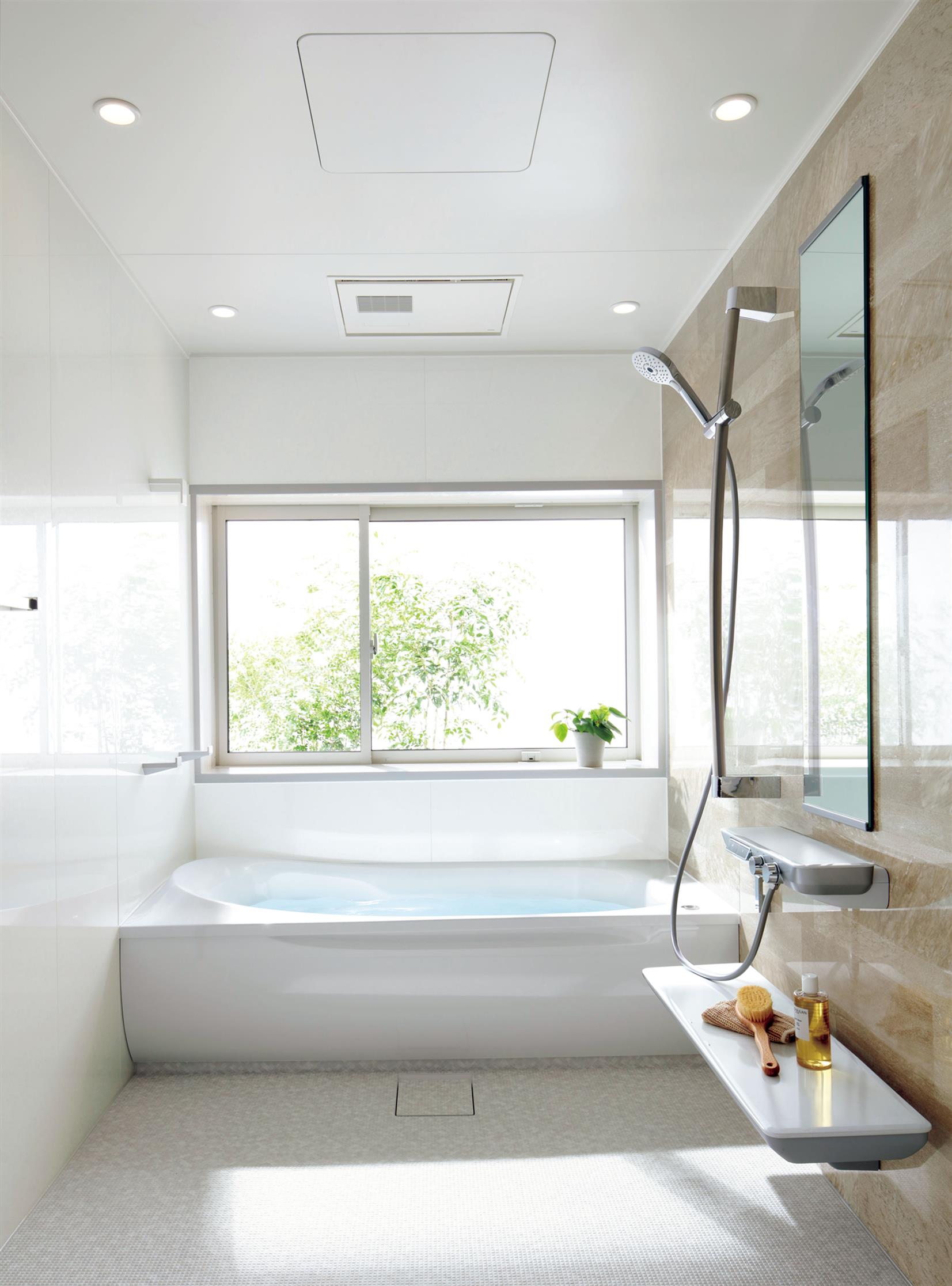 日本人にとって最も使いやすいお風呂を追求したバスルームです。洗い場周りは人間工学と動線を研究し、座ったままでも快適にシャンプーに手が届いたり、シャワーを浴びたりする事が出来ます。2wayタッチ水栓は、天板の上に一時的に物を置ける設計となっています。